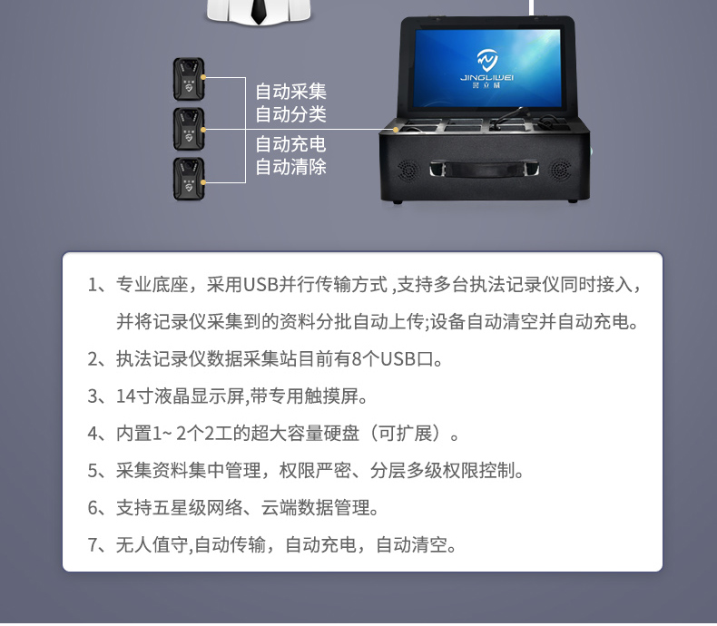 • 產(chǎn)品描述:適用于市場上99%的執(zhí)法記錄儀 全自動上傳避免感染木馬病毒