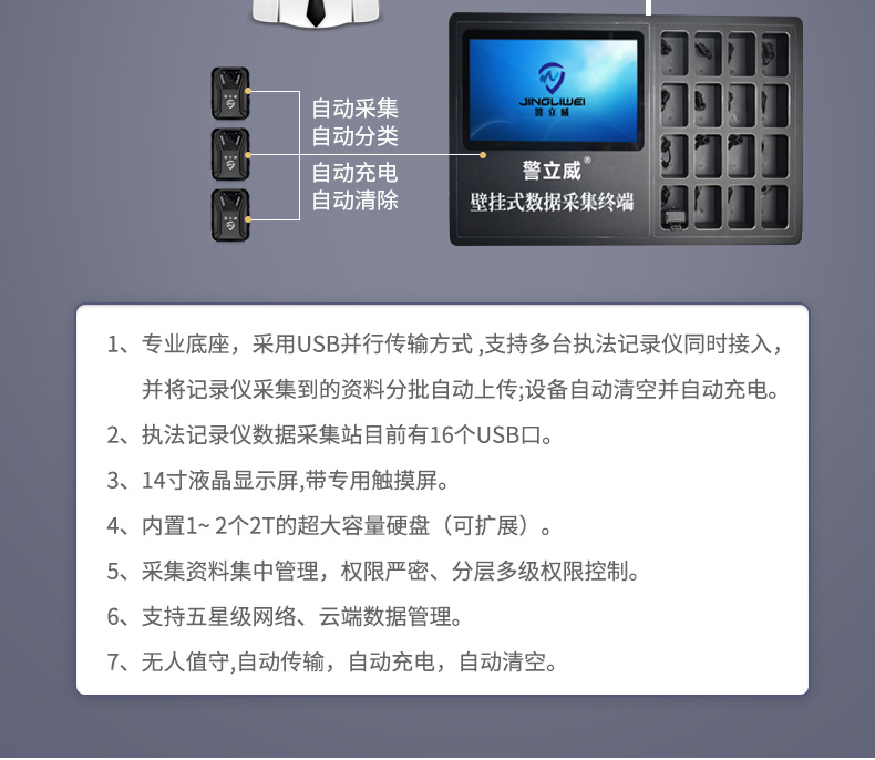 • 產(chǎn)品描述:壁掛式信息采集站適用于市場(chǎng)上99%的執(zhí)法記錄儀 全自動(dòng)上傳避免感染木馬病毒